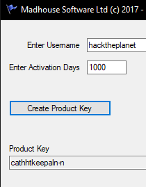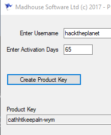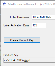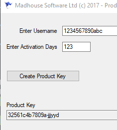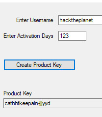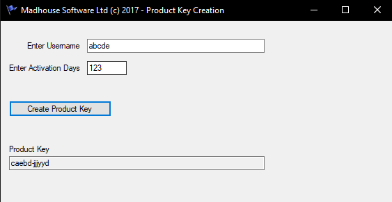 Here we have a simple product key creator. Let’s put in some information and see what we get back.