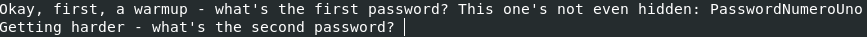 This function is where all of the password checks are at. The first one is very simple and compares your input with “PasswordNumeroUno“. Checking this with the program, we see it is correct.