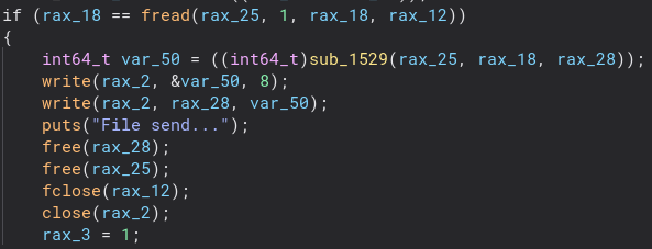 This function is pretty long, but most of it is error handling and file handling, so we can ignore most of it. This is the first section of code that sticks out to me since a function is called right before the file is sent. Now let’s check that function and see what we can learn.