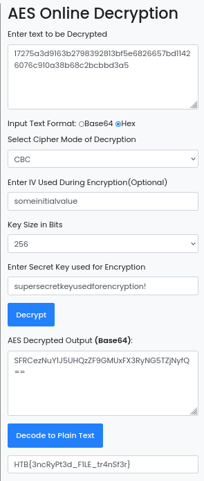 Plugging in all of the information in and we get the flag! Challenges with encryption always seem daunting to me, but this challenge was super easy as long as you did not get too caught up in the code. Thanks for reading and happy reversing!