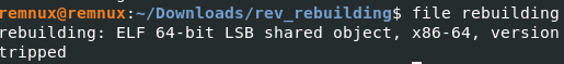 First, let’s run the file command to see what kind of binary this is using the command file rebuilding