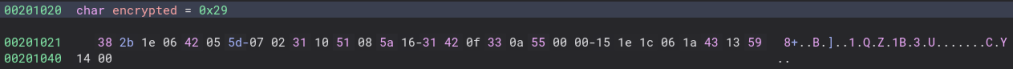 encrypted = b'\x29\x38\x2b\x1e\x06\x42\x05\x5d\x07\x02\x31\x10\x51\x08\x5a\x16\x31\x42\x0f\x33\x0a\x55\x00\x00\x15\x1e\x1c\x06\x1a\x43\x13\x59\x14'