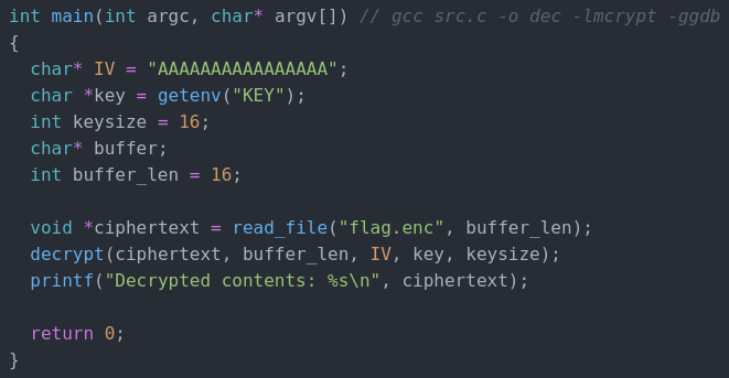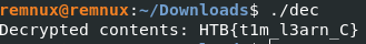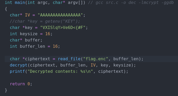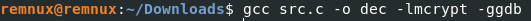 Now, we recompile the binary using the command gcc src.c -o dec -lmcrypt -ggdb and we should get our key!