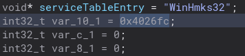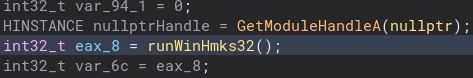 Back into the runWinHmks32 function, there is this variable which is actually a very important function to the program. I am not sure why it looks like this and not a normal function call, but regardless let’s check it out.