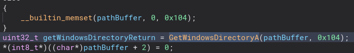 There are more weird memsets and if statements, but it looks like it just gets the system directory. All three of them do the same thing minus some changes in the odd memsets and if statements.
