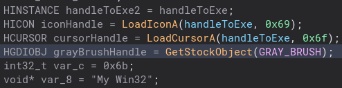 Like my last post, I went through and renamed variables and changed types to make the code easier to read. As usual the _start function is mostly boiler plate code, so let’s open up the main code of the dropper. The first things I notice are some handles to icons and even a gray brush. Not sure why they added that, but it is there.