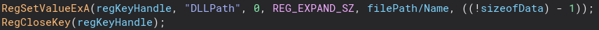 Inside of this function a registry key with the name “SYSTEM\CurrentControlSet\Services\RemoteAccess\RouterManagers\Ip” is given the value “DLLPath” and closed.
