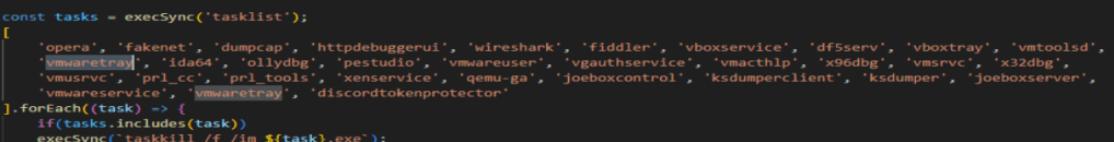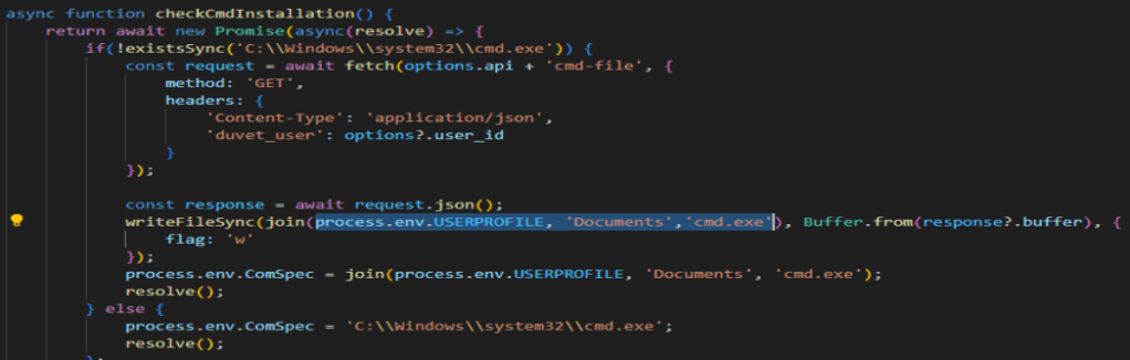 This whole VM check function was fun to read into. It is very interesting to me that opera is on the task kill list since that is just a browser. Next, we need to find the unusual location that a file is written to if cmd.exe does not exist.