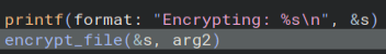 Next, there is an encrypt file function. This is the main one we want to check out. Also notice that the second argument is passed into this function.