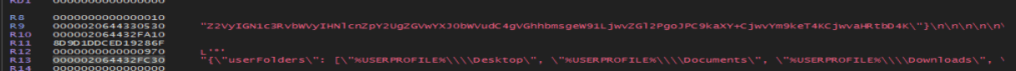 It has some base64 encoded strings I decoded.