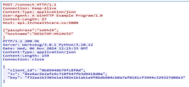 In my hours of trying to find those extensions, I also wondered if they came from the URL that was contacted during the process, so I fired up Wireshark. I knew that a POST request was probably sent out from some strings in the executable, so I filtered on POST requests and ran it. Here is that request. Also in the strings of the .DLL were JSON strings, so I figured this must be it.